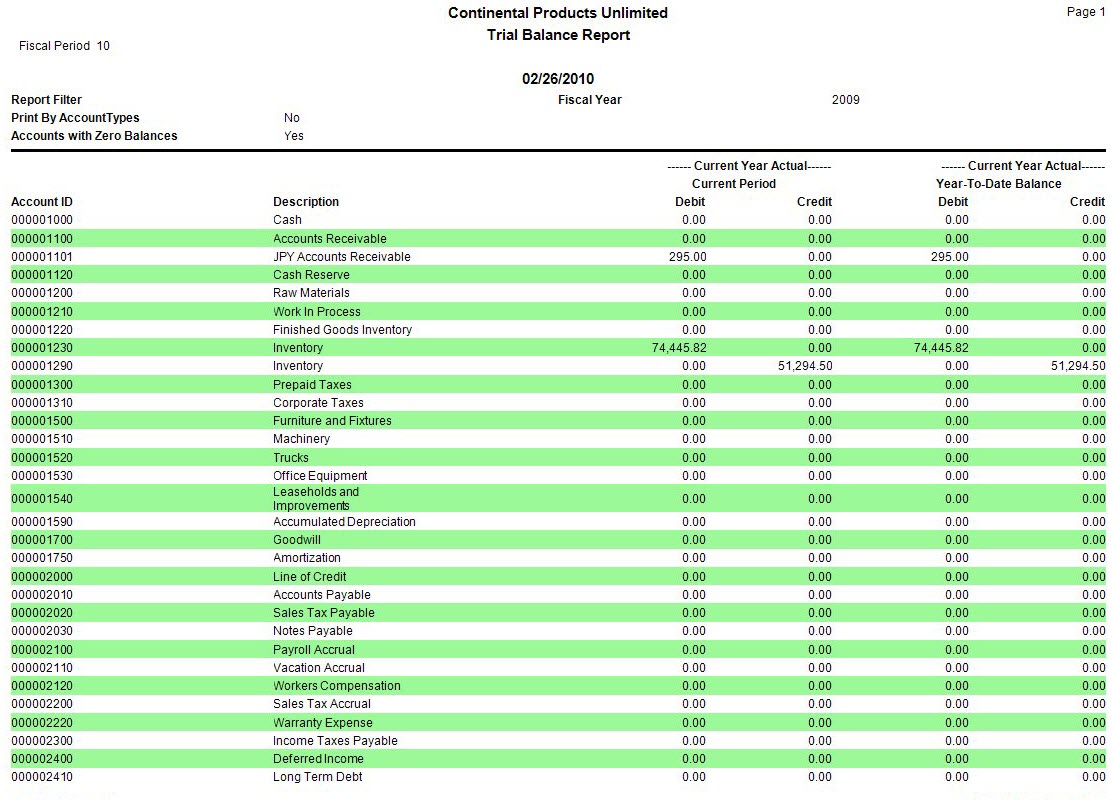Trial Balance Report