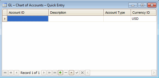 - Click the New button, on the toolbar, to open a blank chart of accounts record.