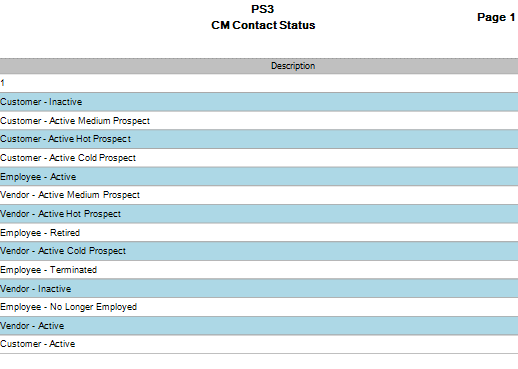 Use the Contact Status function to set up status descriptions for your contacts. When you set up contacts, you assign them one of the statues you enter here.