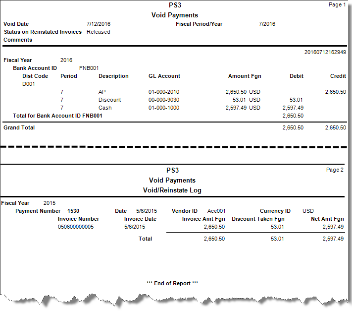 - When the payments have been successfully voided, the Void Payments Report appears.