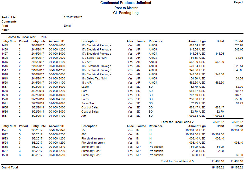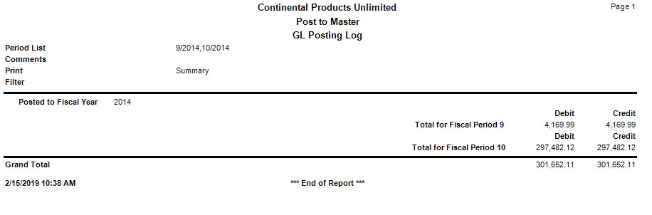 Sample GL Post to Master Log