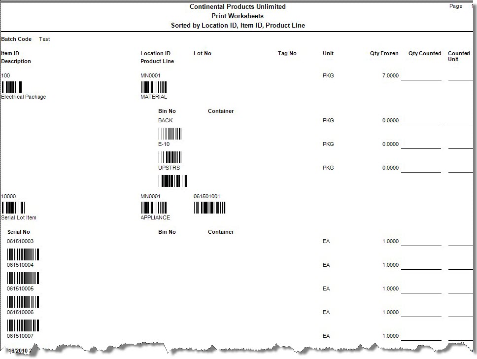 Hint: Most businesses elect not to print frozen quantities, items with zero quantities, or null bins.
