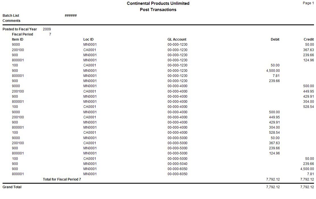 After posting is complete, you can produce a Post Transactions Log. If you do not interface Inventory with General Ledger, use the Post Transactions Log to manually adjust the accounts affected by this function.