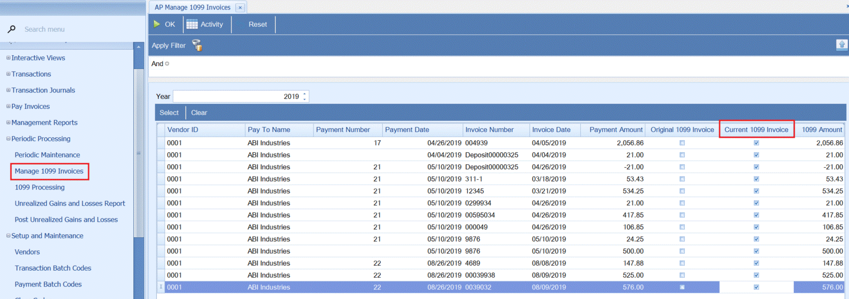 - Review 1099 vendor invoices – mark new 1099 invoices for 1099 processing as needed
