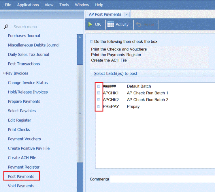 - Verify all posting is complete using a preview on the purchases journal, debits journal, and payment register.