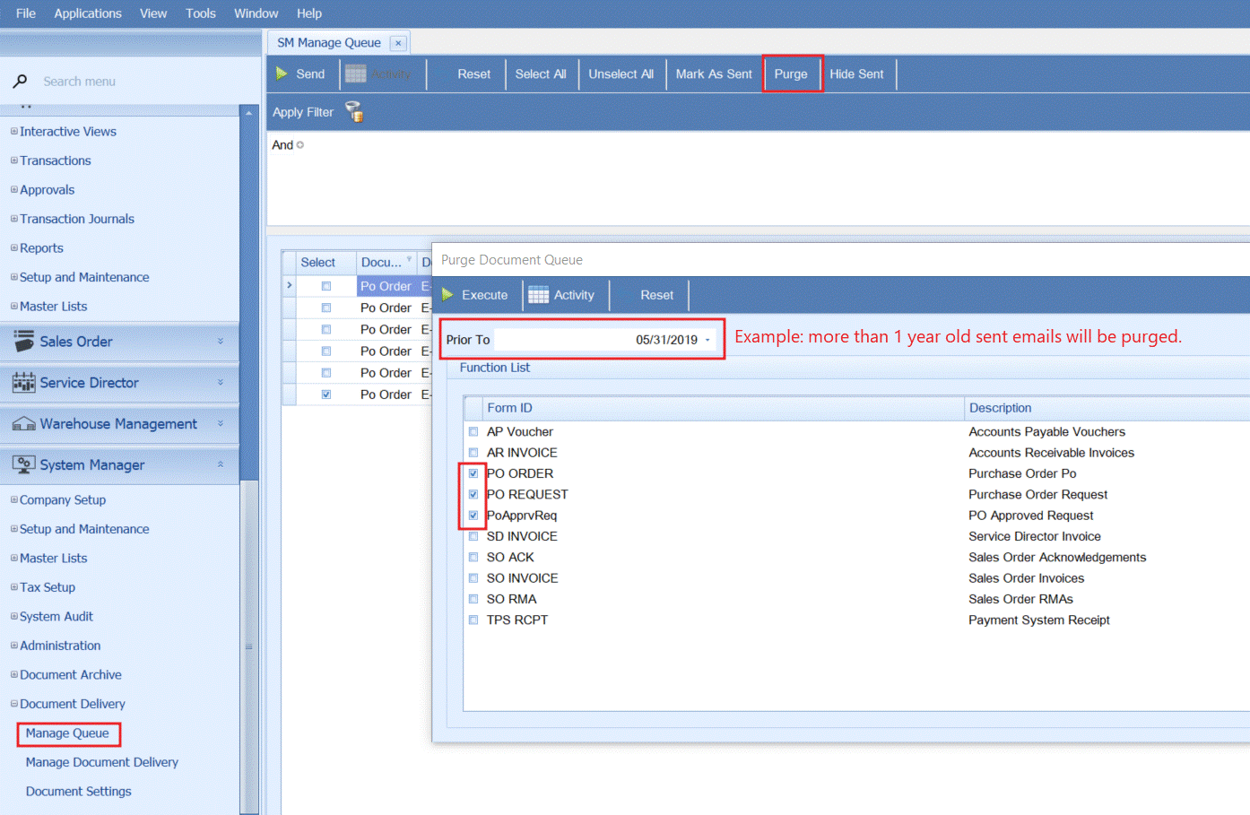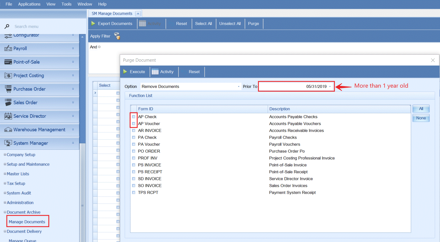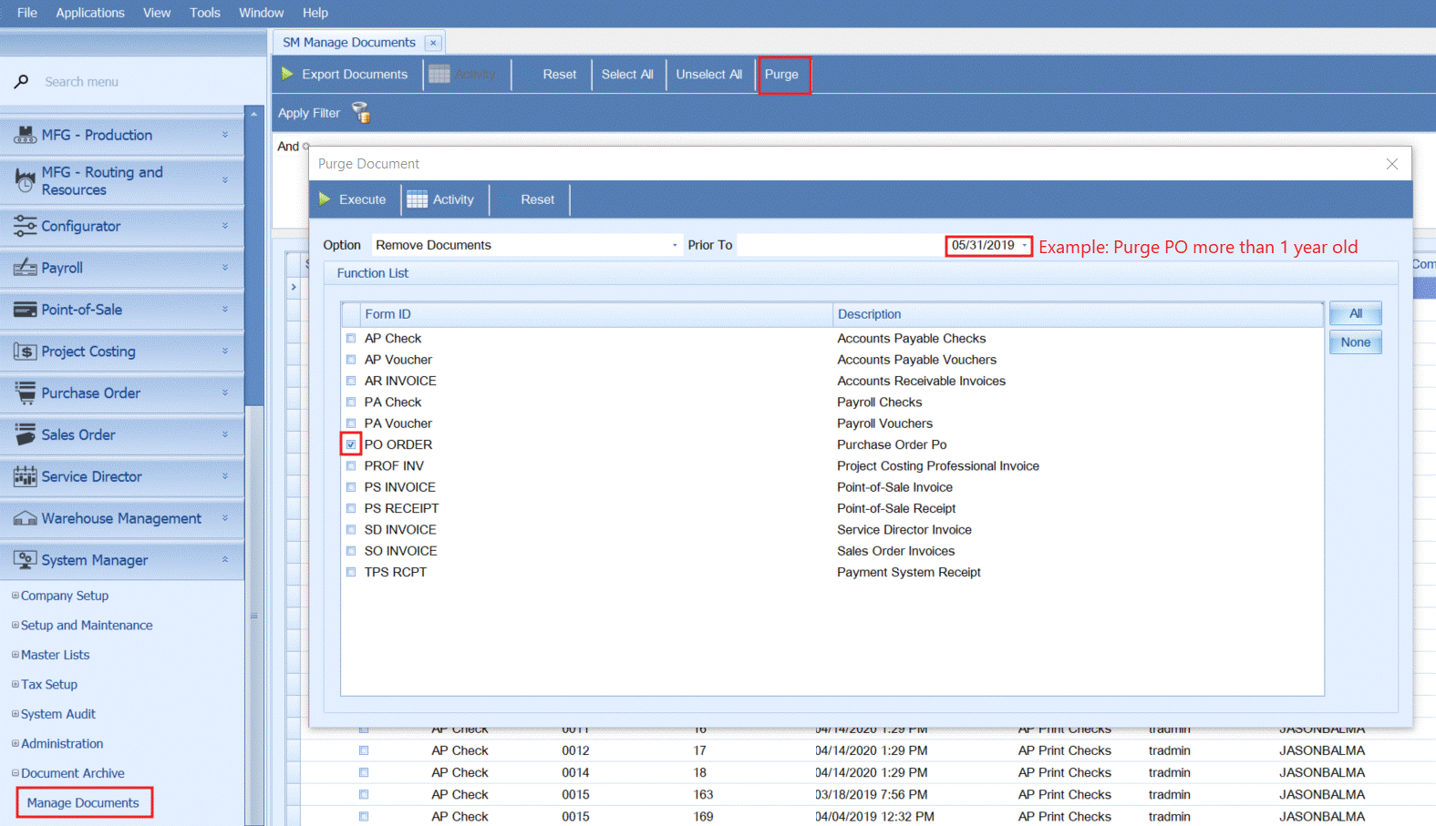 Note: You can also EXPORT documents to a zip folder before purging documents.