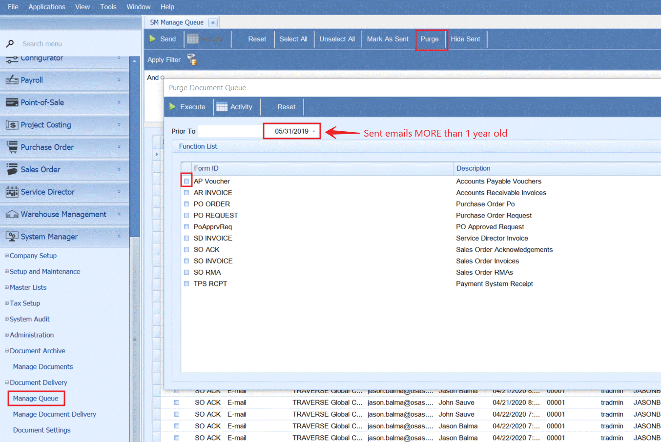 - Clear sent emails and archived documents from PO using regular monthly schedule