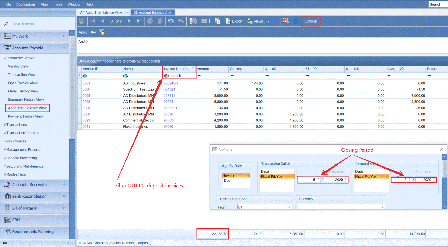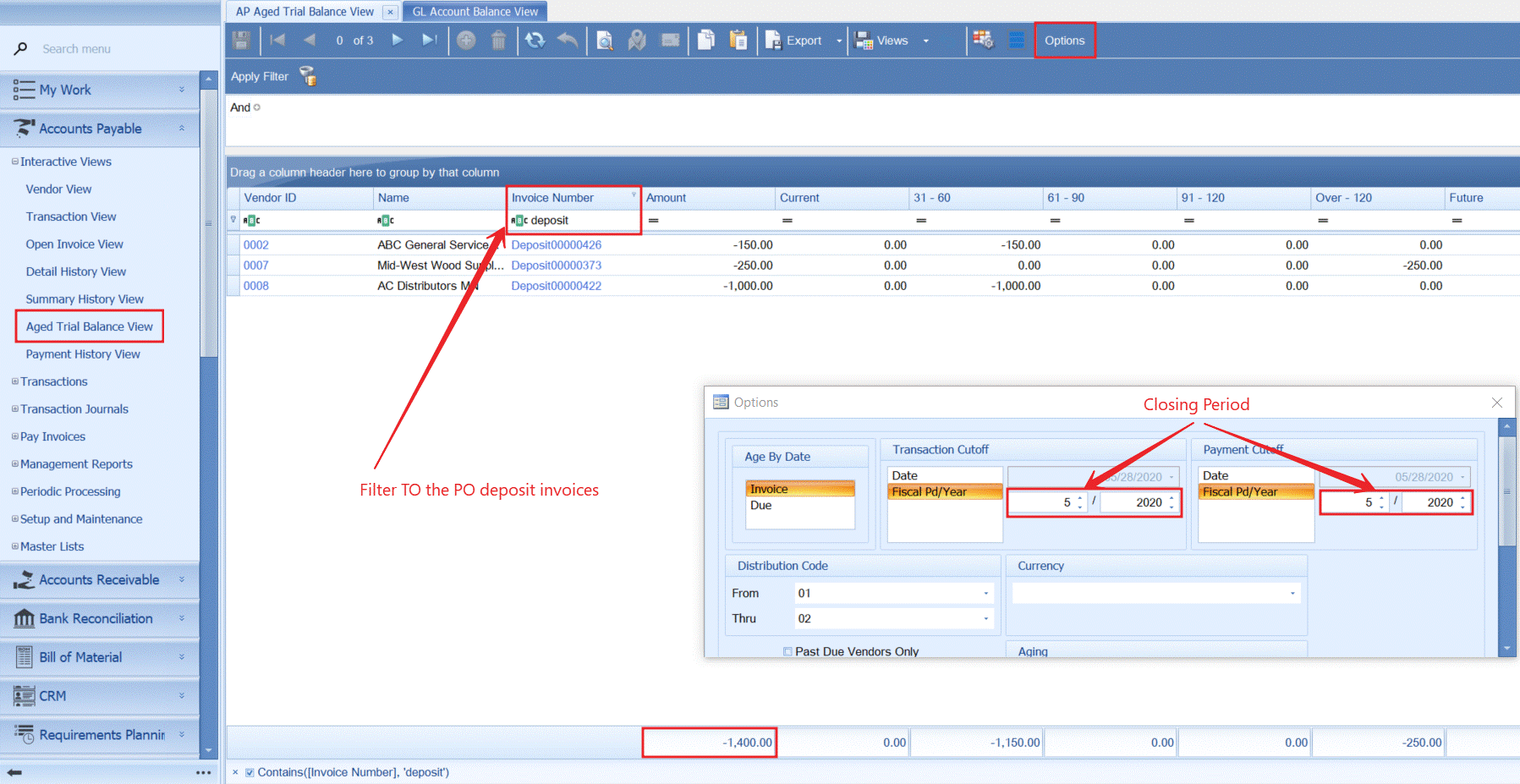 - Reconcile AP account(s) as well as PO deposit account(s)