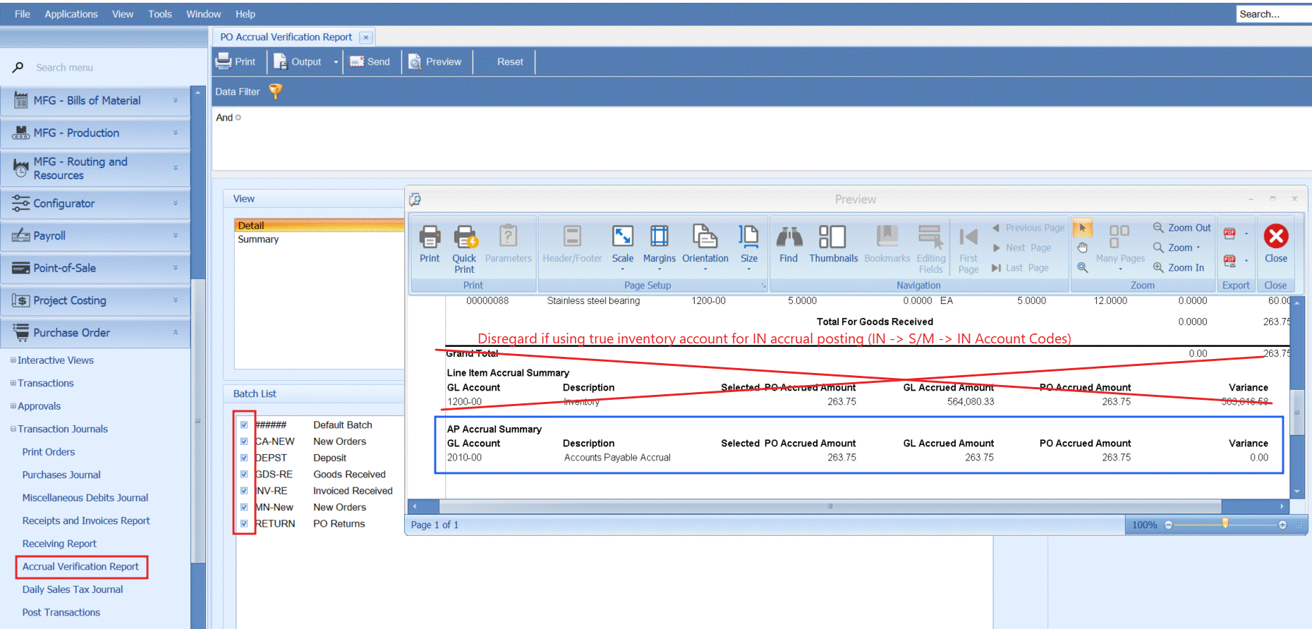 - Run the Accrual Verification report and reconcile your AP accrual account. Note: this report should be exported and saved as it can’t be recreated at a later date.