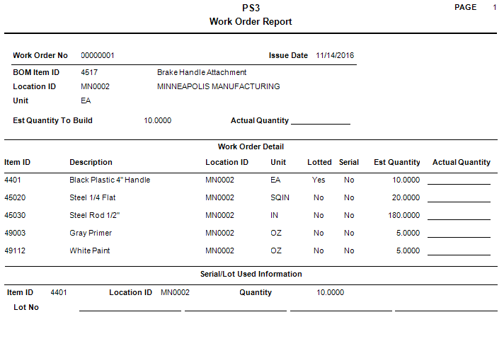 Use the Issue Work Orders function to build an item using the components specified in a bill of material or to remove components from an existing item ("unbuild") to restock inventory quantities. You cannot issue work orders for kitted items because these items are not assembled until you sell them.