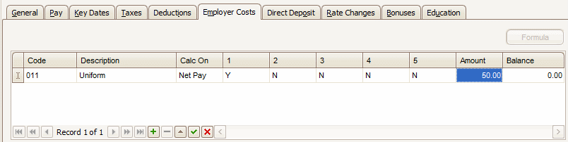Use the Employer Costs tab to specify employer costs for the employee and how they will be calculated.