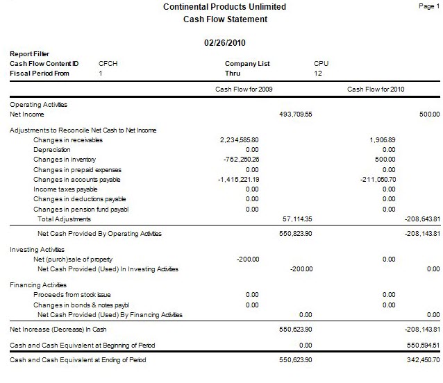 Use the Cash Flow Statement function to gain information about sources and uses of cash and cash equivalents in a business. The Financial Accounting Standards Board (FASB) has determined that a Cash Flow Statement should be part of a complete set of financial statements. The Cash Flow Statement is generated according to the Indirect Method as described in FASB Statement 95.