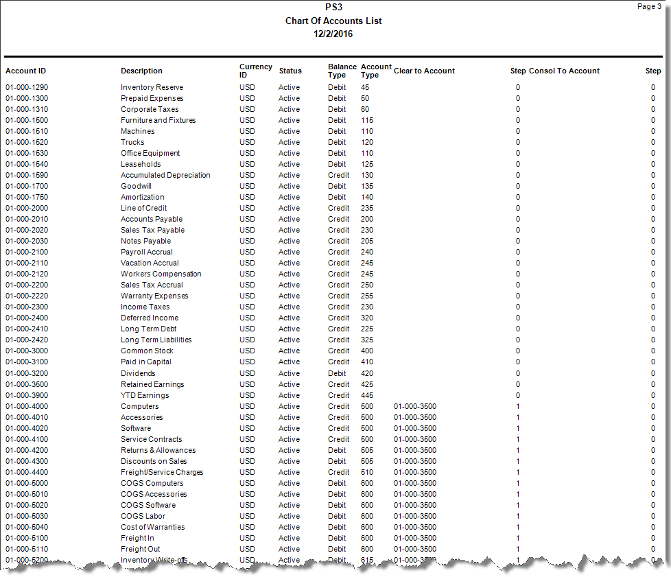 Chart of Accounts List