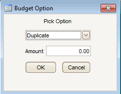 Note: You cannot use this option in Period 0, the last-year columns, or the current-year Actual column.Last Year $ Replace the amounts in the active field and subsequent fields in the column with the amount in the corresponding last-year Actual column. Enter the positive or negative amount in the Amount field and click OK.
