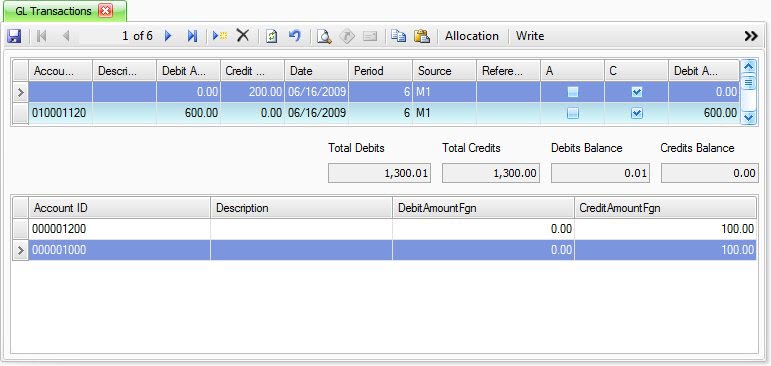 - Click the Write button on the toolbar to write the transactions to the GL Journal.