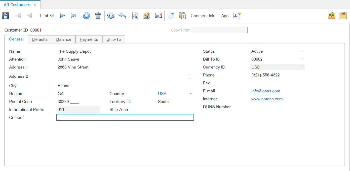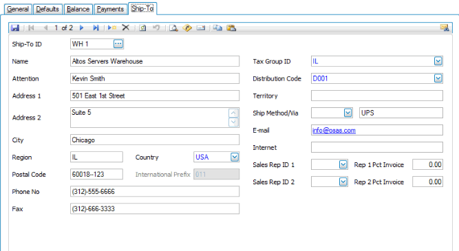 Use the Ship-To tab to enter, assign, change, and delete shipping addresses. This is an additional way to access the Setup and Maintenance Ship-To Addresses function.