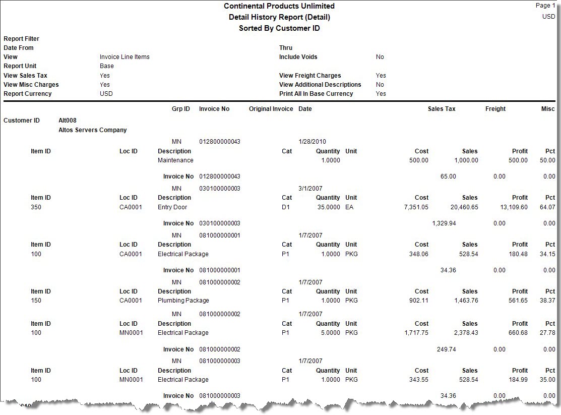 Use the Detail History Report to view a customer's posted transactions. The report shows which items are sold, when they are sold, and the amount each item is sold for.