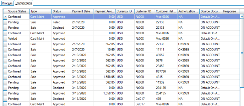 If there is no invoice number, as in the case of a pre-authorization payment (SM business rule for external payment processing type), the value of the AR business rule for default On Account invoice number will appear in the Source Document field. Once an invoice is created, the invoice number will appear in the Source Document field.