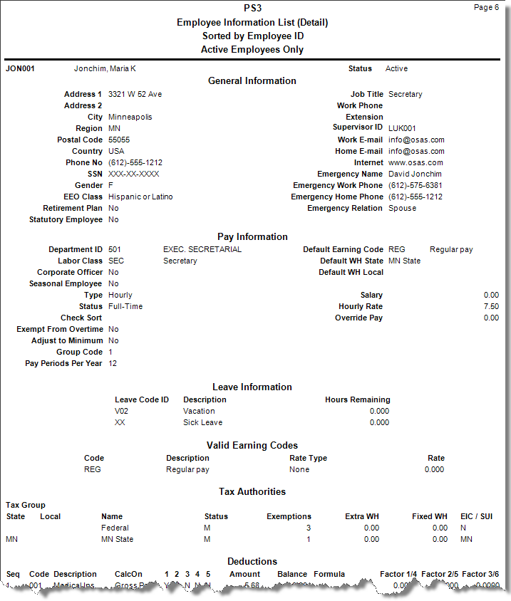 Use the Employee Information List function to produce a list of employees and their related information that you set up using the Employee Information function.