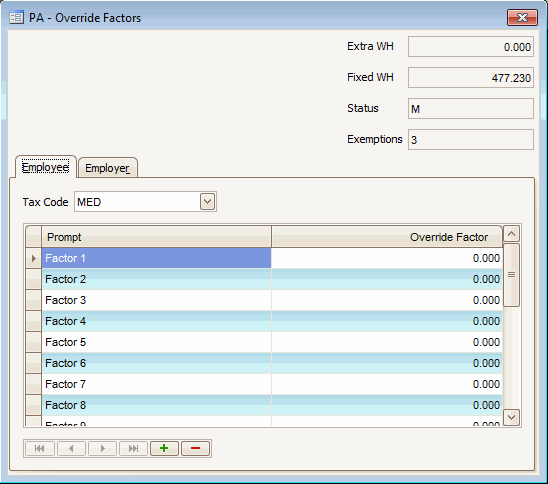 Override Factors dialog box - Employee tab