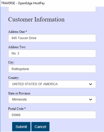 Click the Submit button (OpenEdge) or the Process Transaction button (Vantiv) to submit the information, or use the Cancel button to cancel the process.
