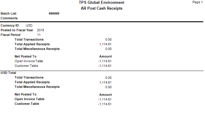 - Print the Cash Receipts Journal and Post Cash Receipts to post the cash receipt(s) and apply the payment to the invoice. The Post Cash Receipts log will preview.