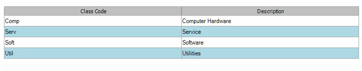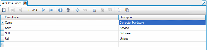 - Click the Delete button, on the toolbar, to delete the selected class code.