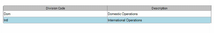 - Click the Save button, on the toolbar, to save any changes made to the division code.