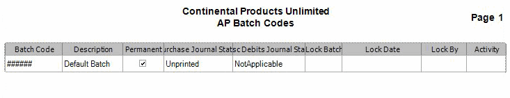 If you elect not to use batch processing in the Business Rules function, use the Transaction Batch Codes function to toggle the lock status of the batch ######, which is the main batch. All transactions are automatically assigned to the main batch if you do not elect to use batch processing. This batch code will not be deleted even if the permanent box is unchecked.