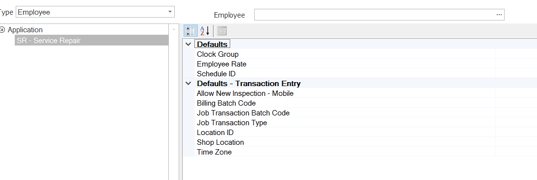 - Select an Employee for which you want to set defaults.