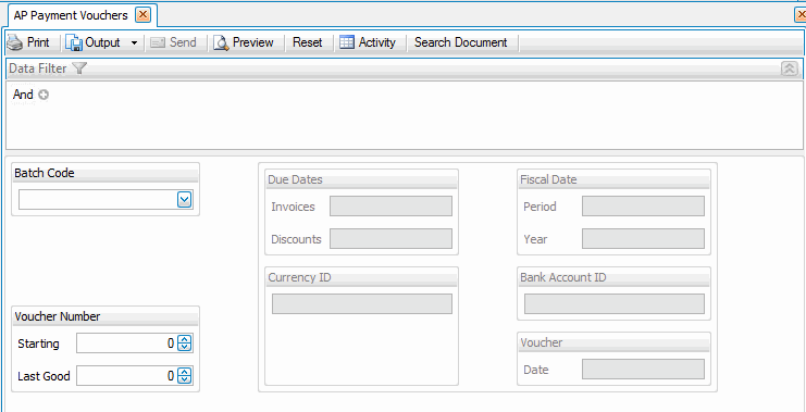 Note: If you are reprinting vouchers (for example, due to a printer error), enter the number of the last good voucher that printed correctly in the Last Good field.