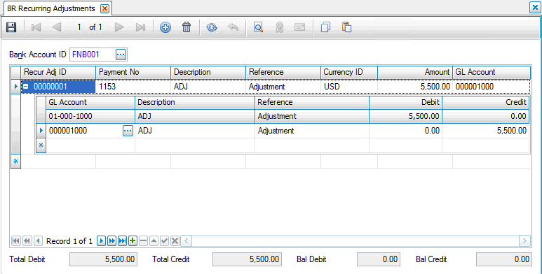 - Click the Save button, on the toolbar, to save the new recurring adjustment.