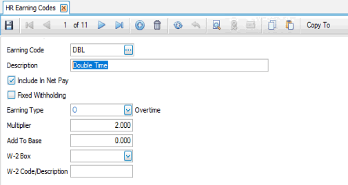 - Click the Save button, on the toolbar, to save any changes made to the earning code.