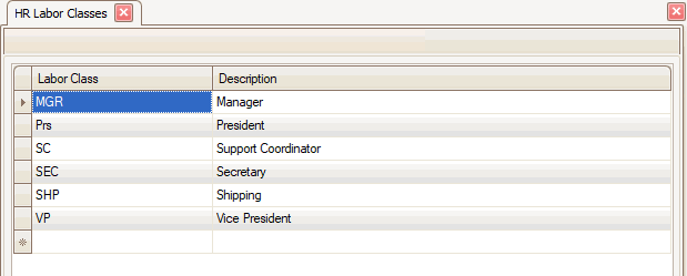 - Click the New button, on the toolbar, to open a blank labor class.