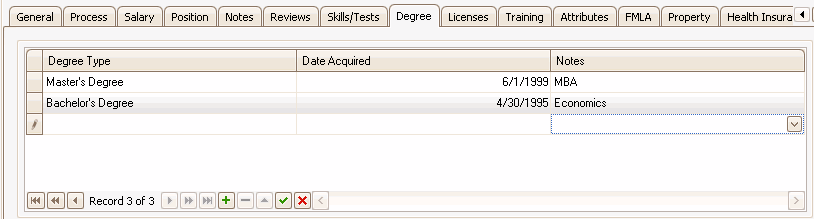 The Degrees tab tracks the degrees an individual holds. An individual may hold multiple degrees.