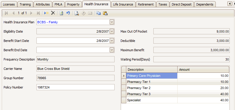 The rest of the fields are pulled from information set up in Health Plans maintenance, and can only be edited there.