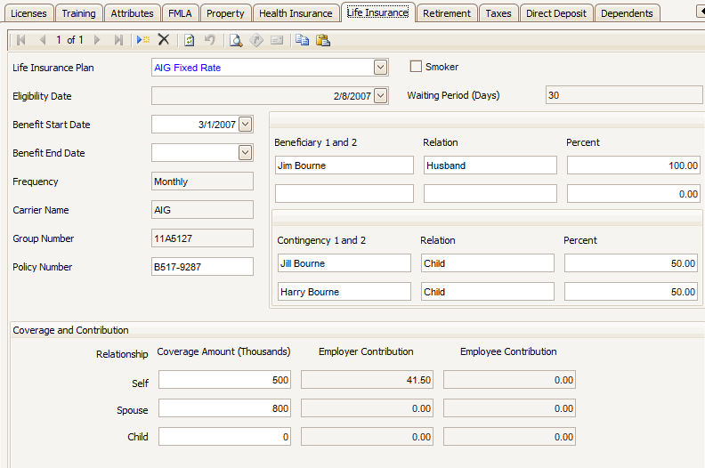 The rest of the fields are pulled from information set up in Life Insurance Plans maintenance, and can only be edited there.