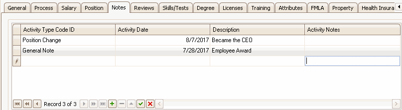 The Notes tab keeps track of any notes that you might want to enter about an individual.