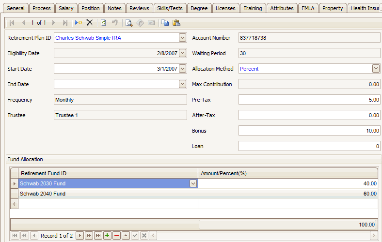 - Select the appropriate retirement plan from the Retirement Plan ID drop-down list.