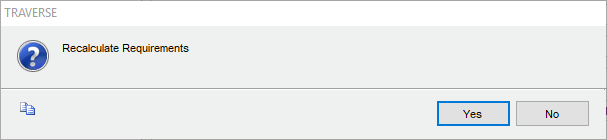 Click the Recalculate button on the toolbar to recalculate the amount of time to schedule for the order. Also, if you click the Save button, a dialog box pops up and asks if you want to recalculate requirements. Click 'Yes' to recalculate.