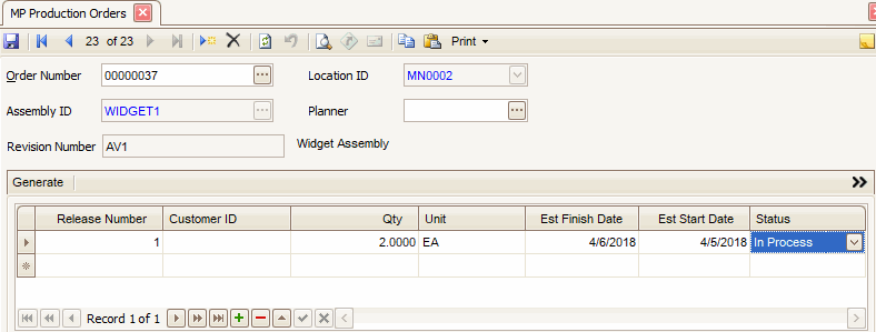 With regards to scheduling, the system will use the larger of machine time or labor time. In our example, we ordered 2 widgets, with 2 hours of machine time, 1 hour of labor setup time, and 8 hours of labor run time. If we only use 1 operator (Operator Count = 1), the system will schedule 9 hours for the operation (1 hr setup +(4 hrs / 1 operator * 2 widgets) = 9 hrs; 9 hrs of labor time is greater than 2 hrs of machine time). Remember: Machine Setup and Labor Setup are performed once no matter the quantity of the item on the production order.