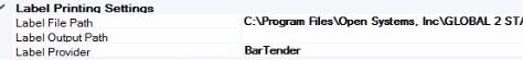 - Label Provider: This is where you tell Traverse which labels to use. Select 'Standard' to use the labels you create in Traverse. Select the third-party label printing provider, such as BarTender, if you use the third-party label provider to create labels.