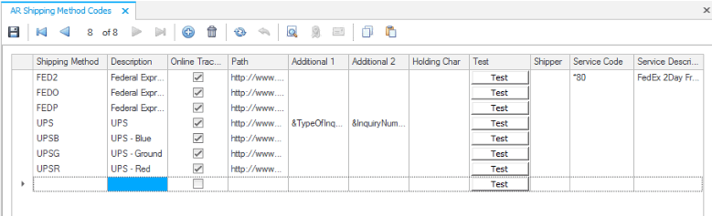 4. Mark the Online Tracking check box if you want this shipping method code to be searchable to the web when a shipment number is entered into the Ship-To tab on Sales Orders.