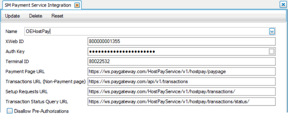 - Select/enter 'OEHostPay' for the Name of the OpenEdge payment service.