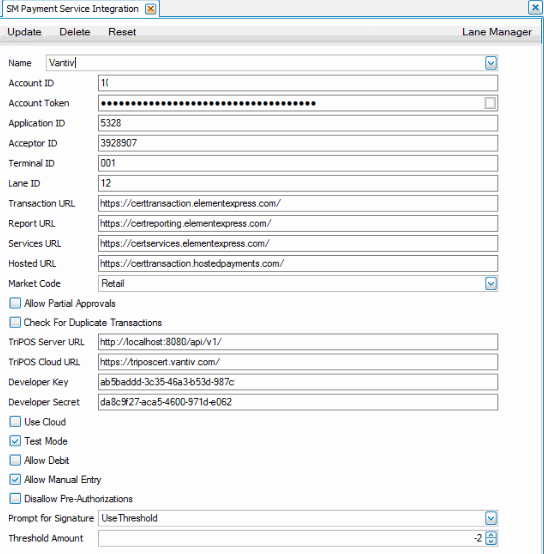 - If applicable, enter the lane ID for the current terminal into the Lane ID field. Lanes are used to link EMV/pin pad devices to the port or computer the EMV/pin pad is connected to. Use the Lane Manager function to add lanes (EMV/pin pad devices) to the system.