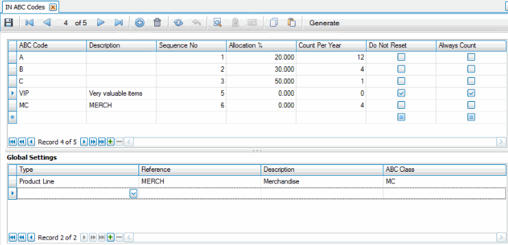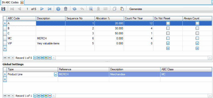 - Assign ABC codes based on Global Settings (the ABC class from the first ABC global setting that matches item/location).