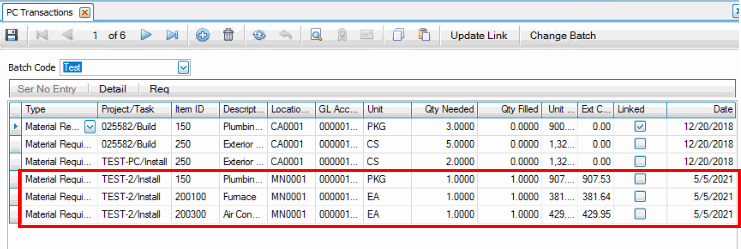 The items you confirmed will appear on PC Transactions tab for the batch.