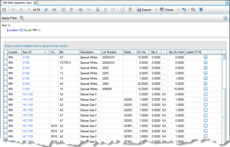 Before you take a physical inventory, run the WM Item Quantity View so you have a current list of items and quantities for each bin to help you decide what to count in each batch.